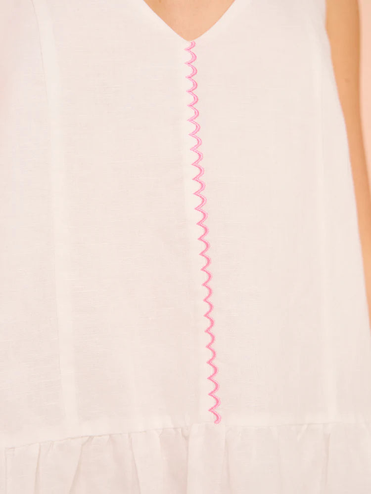 and vertical pink scalloped embroidery detail at the centre front and back of the dress,