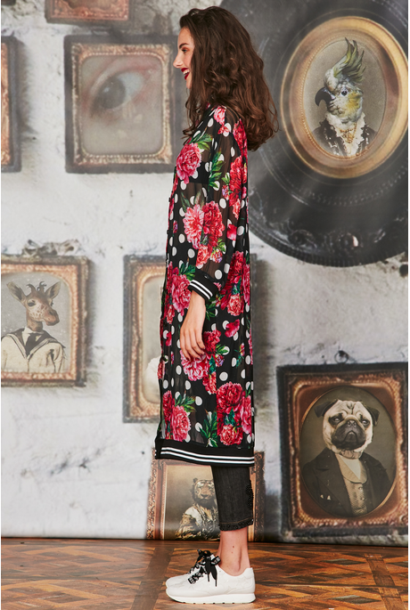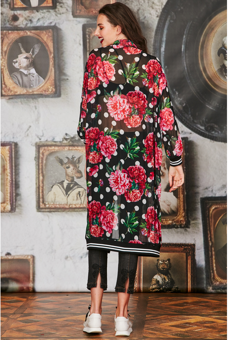 Decorate yourself in the beautiful blooms of the ‘I Need A Parker’ jacket. Featuring a collared neckline, button-down front and trimmed in a striped rib.